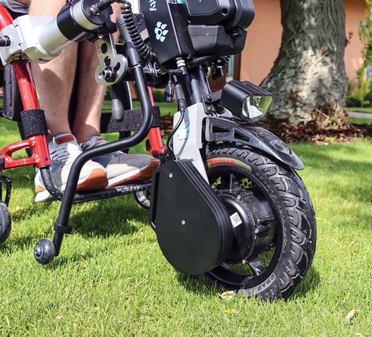 For those who like to be on the move, PAWS Cruiser is the perfect choice. This powerful add-on for manual wheelchairs is versatile, whether it is around town or along a forest trail. The 16” drive wheel transports you safely over slightly uneven terrain and and opens up a new world of independence. Enjoy a relaxed day out with PAWS.